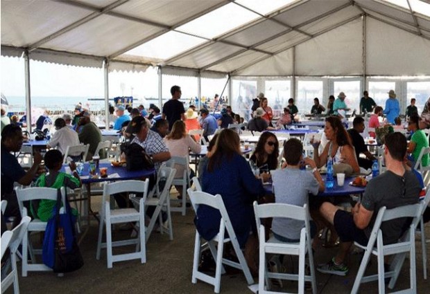 Preferred Seats are a fantastic way to get a great seat for the Air Show, right on the Sea Wall for an unobstructed crowd view close to show center. This year we have added a shaded seating area with picnic tables for enjoying some of the delicious items offered by our local food vendors. We will also have portable restrooms designated exclusively for our Preferred Seating guests. Ticket will be scanned at the entry to the Preferred Seating area and ticket holder will be given an wristband that will allow unlimited in and out of the area during the show. Due to fire codes strollers will not be allowed inside the Preferred Seating area. There will be a monitored stroller check in area located just outside the Preferred Seating entry.