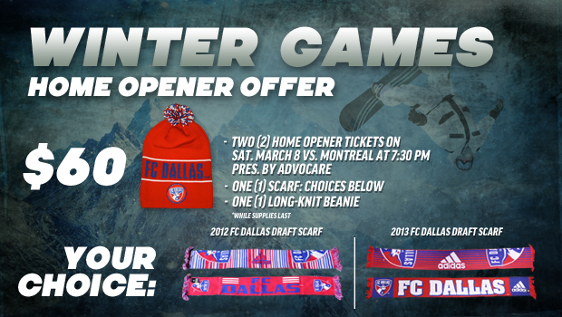 - One (1) FC Dallas Scarf (your choice between 2012 or 2013 Draft Day scarf while supplies last)